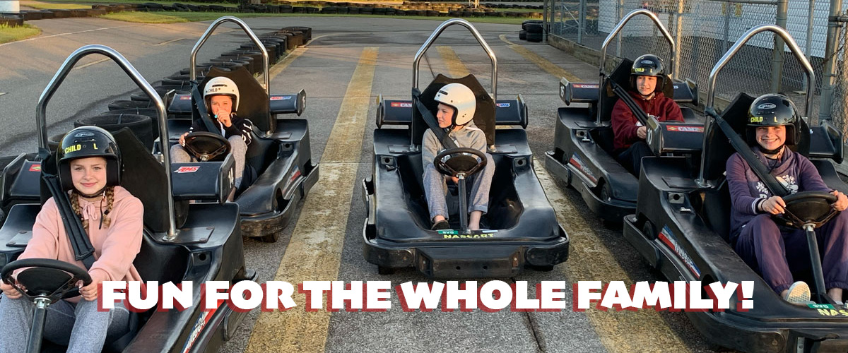 Family Amusement at it's BEST. 1/2 mile paved track with 24 Go-Karts, 8 Double seaters so children too small to drive alone can enjoy in all the fun of racing. Fully lit for night racing. 18 hole Miniature Golf Course that is as much fun for the children as it is for the competitive golfers out there.